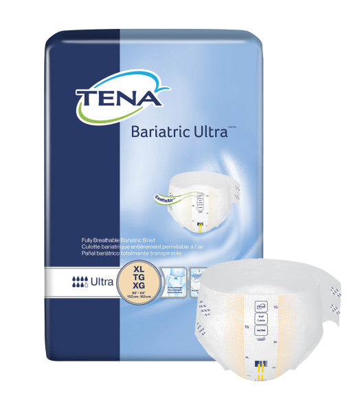 TENA Bariatric Adult Diapers are designed for maximum coverage while providing superior leakage protection from urinary and bowel incontinence. With a wide waist and adjustable side fasteners, this adult incontinence brief provides ultimate protection without sacrificing comfort and fit.